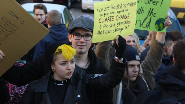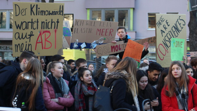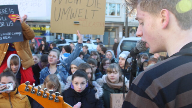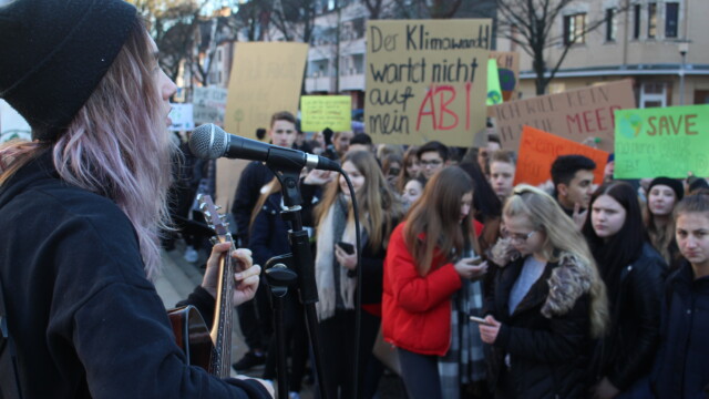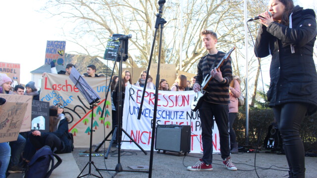 Klimademo mit 300 Schülern und Live-Musik
