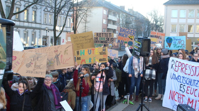 Schwerte – Damit hatte wohl niemand gerechnet: rund 300 Demonstranten fanden sich am Freitagmorgen gegen 8:30 Uhr vor dem Rathaus ein. Doch nicht nur deshalb war die Klima-Demo unter dem Motto #fridaysforfuture ein voller Erfolg. Die Schülerinnen und Schüler waren ausgerüstet mit zahlreichen, teilweise kunstvoll gestalteten Transparenten und Schildern. Alina Jagel, Felix Martin und Ann-Kathrin Moor heizten die Menge mit Live-Musik an. Mehrere emotionale Reden verwiesen auf den Kern der Sache: Die Rettung des Klimas nimmt eine neue Dimension an, die Kinder und Jugendlichen nehmen das Thema jetzt selbst in die Hand. Dafür bedankte sich u. a. Pfarrer Hartmut Görler, in Schwerte zuständig für die Kinder und Jugendarbeit, mit eindringlichen Worten.