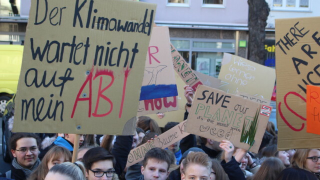 Deutlicher als Jugendpfarrer Hartmut Görler konnte ein Erwachsener zur Sache kaum werden: „Wir bilden uns unsere Meinung, aber wir ändern nichts. Wir kriegen den Arsch nicht hoch und machen einfach weiter wie immer. Wir sogenannten Erwachsenen. Nein, wir sind nicht erwachsen. Wir sind was den Klimawandel angeht Kinder. Wir verschließen die Augen vor der Wirklichkeit. Ihr aber steht hier und öffnet uns die Augen. Danke für euer Engagement, danke, dass ihr nicht so angepasst seid wie wir. Danke für euren Weitblick. Danke, dass ihr hier seid. Ich hoffe und wünsche uns so sehr, dass euer Einsatz und euer Mut auch andere anstecken: Lehrerinnen und Lehrer, Väter und Mütter, Chefs und Angestellte, Alte und Junge, und ich hoffe, dass auch meine Kirche eine klimabewegte Kirche ist oder wird.“