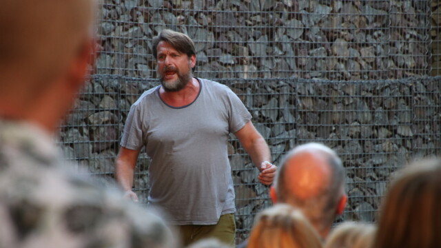 Wer große Artistik erleben will, ist auf dem Markt gut aufgehoben, wo Omnivolant und Guts Pie Earshot ihre Show in luftiger Höhe präsentieren – die St. Viktorkirche bildet die ideale Kulisse. Und Sie dann noch ein nachhaltiges One-Man-one-Baum-Theaterstück erleben wollen, dann besuchen Sie Peter Trabner an der Lärmschutzwand auf dem Gelände der Rohrmeisterei. „Der Tod des Empedokles“ nennt der Schauspieler sein Stück – beeindruckend! Nur gehen Sie bitte nicht vor dem Ende. Dann dann erleben Sie aber Trabners blaues Wunder!