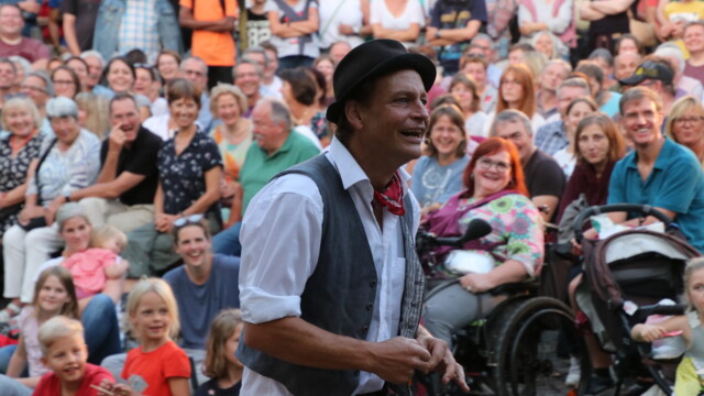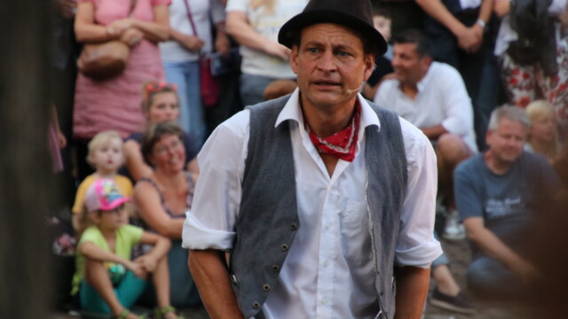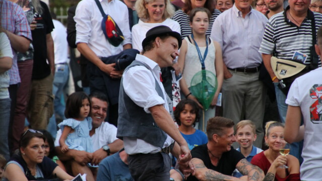 Empfehlungen? Nein, die kann man nicht aussprechen. Aber es ist für jeden wieder etwas dabei. Das Theater am Fluss präsentiert sich und „Den kleinen Lyrikladen“ unter der Regie von Lars Blömer. Das kleinste Varieté der Welt lockte Menschen in Scharen an. Gegenüber im Rondell auf dem Wuckenhof bereitete Cotton McAloon, der „Intercontinentertrainer“, seinen Zuschauern Spaß.