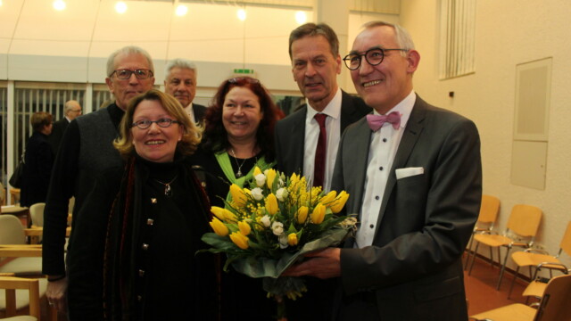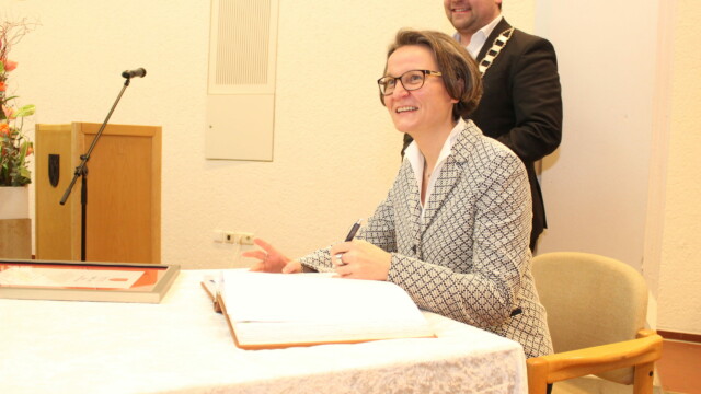Ministerin Ina Scharrenbach stellte in ihrer Laudatio die hohen Ansprüche an einen Bürgermeister heraus und auch die lange Amtszeit stelle laut ihr etwas Besonderes dar: „So viele Bürgermeister oder Bürgermeisterinnen mit so einer langen Amtszeit in Nordrhein-Westfalen haben wir auch nicht so häufig.“