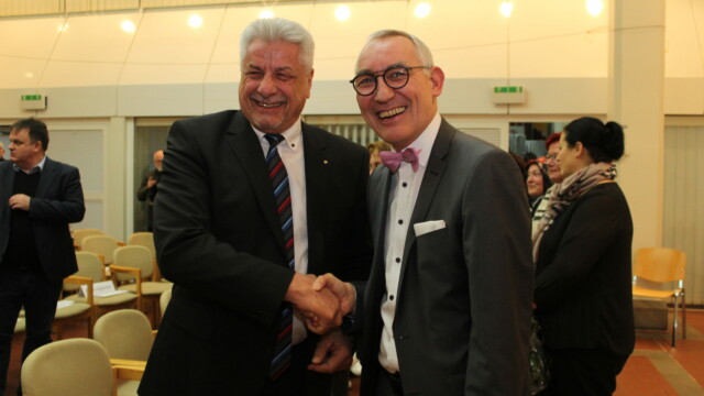 Die Ehrenbürgermeister-Urkunde wurde Böckelühr durch den derzeitigen Bürgermeister, Dimitrios Axourgos, überreicht. Musikalisch umrahmt wurde die Auszeichnung vom Ruhrstadt Orchester.